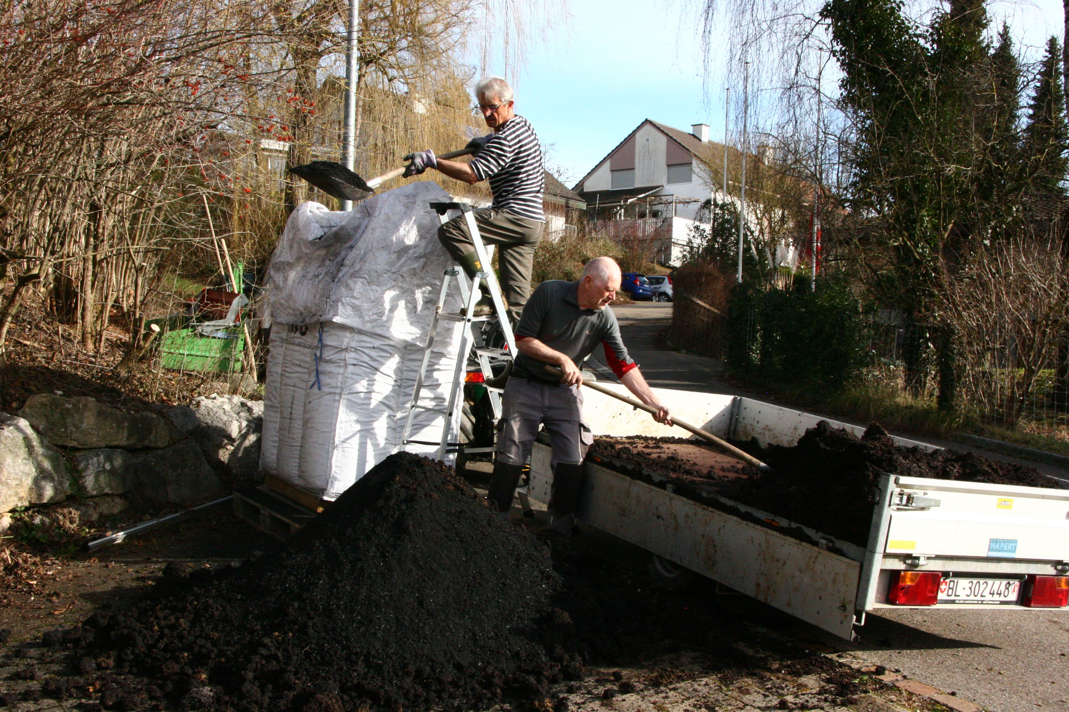 Wir beschaffen speziell entgaste Holzkohle aus Gärtnereiabfällen (die dabei anfallende Wärme wird in ein Wärmeverbund eingespeist) ohne toxische Kohlenwasserstoff-Verbindungen in Form von kleinen Partikeln. Holzkohle hat die Eigenschaft von immens großer innerer Oberfläche, die sehr bindungsaktiv ist, darum kann sie z.B. als Aktivkohle zur Geruchshemmung eingesetzt werden. Dieses Bindungsbedürfnis der Holzkohle wird vorgängig gesättigt durch die Vermischung mit reifem Kellerkompost (kompostierte Abfälle aus der Traubenverarbeitung und Heferückstände). Die Im Kompost enthaltenen Nährstoffe siedeln sich auf den inneren Oberflächen der Kohle an. Diese Mischung sollte großzügig dem Regen ausgesetzt oder bewässert werden, Holzkohle kann auch Wasser sehr gut einlagern.