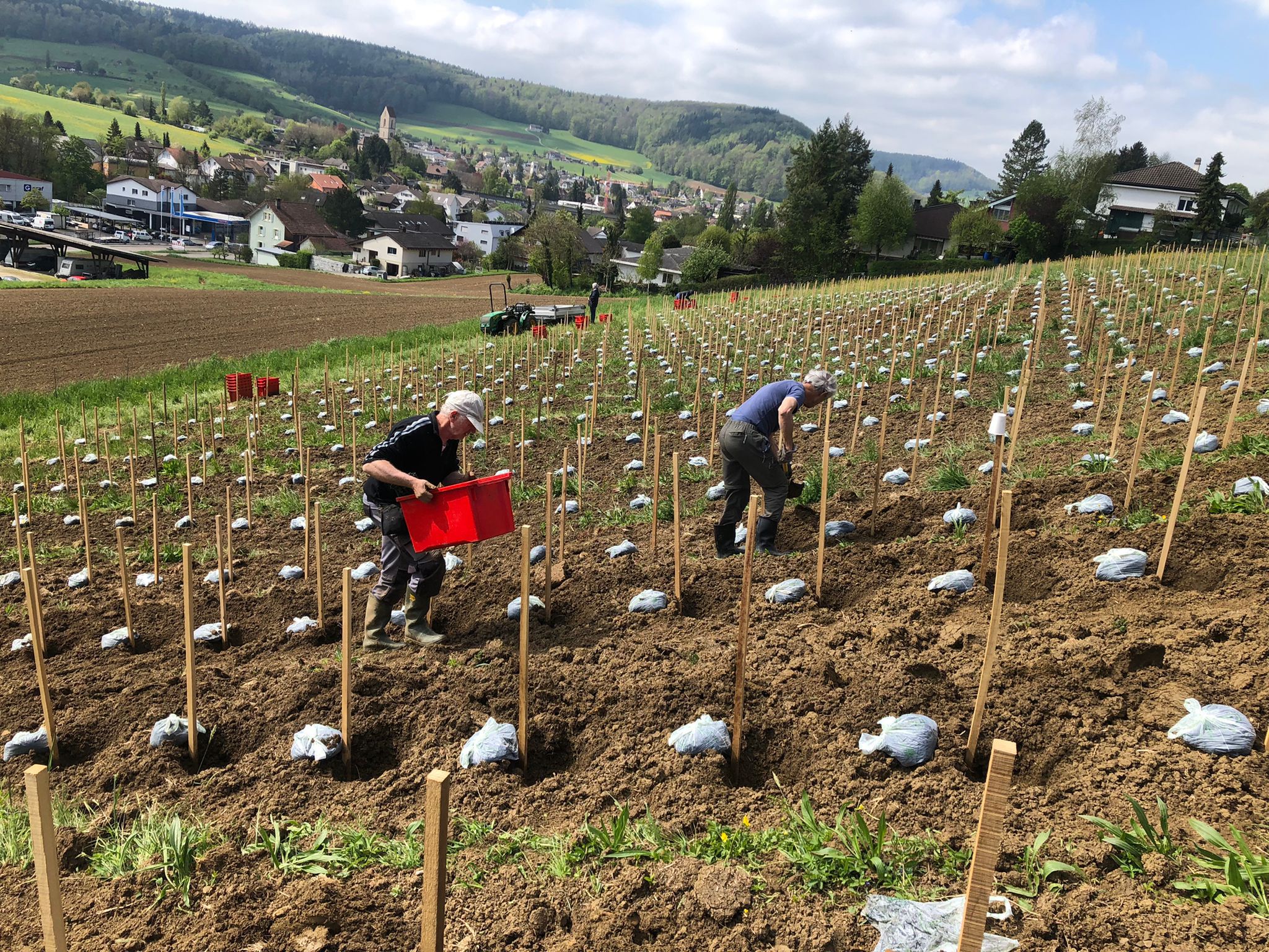 Beim Pflanzen junger Rebstöcke geben wir diese Kohlenmischung in das Pflanzloch. Darüber kommen die Wurzeln der Jungrebe und alles wird ordentlich mit Erde aufgefüllt und angepresst. Im Frühjahr 2022 haben wir erstmals diese Methode angewandt. Die Jungreben hatten eine hervorragende Nährstoffversorgung und wuchsen über die Vegetationsphase bis viermal mehr als normalerweise zu erwarten gewesen wäre. Die große Trockenphase Ende Frühjahr bis in den Sommer haben die Pflanzen ohne Einbuße gemeistert mit kräftiger Blattentwicklung. Dieser Prozess wurde nicht wissenschaftlich begleitet. Die Erfahrungen sind subjektiv, aber dennoch sind wir so Überzeugt von dieser Methode, dass wir sie in Zukunft weiterhin anwenden werden.